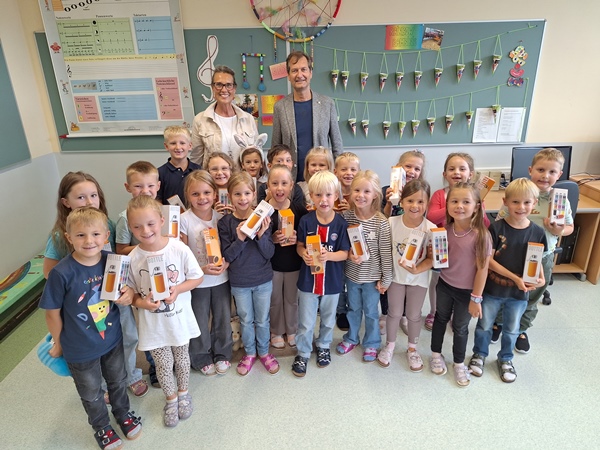 Die ersten Klassen hatten Besuch aus der Gemeinde Wolfsberg. Herr Penz überreichte allen Kindern eine tolle Trinkflasche zum Schulstart.